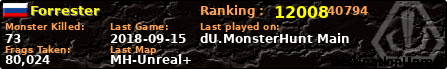 | Server | Map | LastGame | Score | Teamscore | Monsterleft | Deaths | Suicides | TKs | Distance | Playtime | |