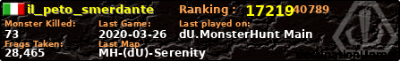 | Server | Map | LastGame | Score | Teamscore | Monsterleft | Deaths | Suicides | TKs | Distance | Playtime | |