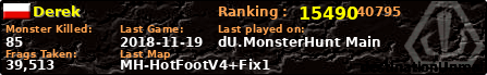 | Server | Map | LastGame | Score | Teamscore | Monsterleft | Deaths | Suicides | TKs | Distance | Playtime | |