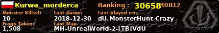 | Server | Map | LastGame | Score | Teamscore | Monsterleft | Deaths | Suicides | TKs | Distance | Playtime | |