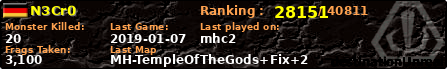 | Server | Map | LastGame | Score | Teamscore | Monsterleft | Deaths | Suicides | TKs | Distance | Playtime | |
