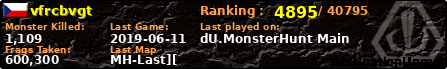 | Server | Map | LastGame | Score | Teamscore | Monsterleft | Deaths | Suicides | TKs | Distance | Playtime | |