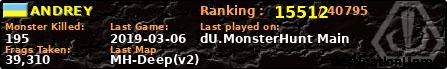 | Server | Map | LastGame | Score | Teamscore | Monsterleft | Deaths | Suicides | TKs | Distance | Playtime | |