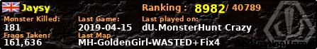| Server | Map | LastGame | Score | Teamscore | Monsterleft | Deaths | Suicides | TKs | Distance | Playtime | |