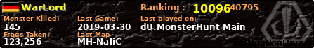 | Server | Map | LastGame | Score | Teamscore | Monsterleft | Deaths | Suicides | TKs | Distance | Playtime | |