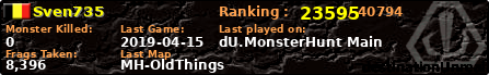 | Server | Map | LastGame | Score | Teamscore | Monsterleft | Deaths | Suicides | TKs | Distance | Playtime | |