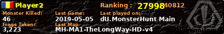 | Server | Map | LastGame | Score | Teamscore | Monsterleft | Deaths | Suicides | TKs | Distance | Playtime | |