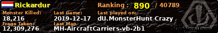 Rickardur | | PlayerID: | 35552 | | Overall MHT: | 12,309,276 | | Overall Deaths: | 112 | | Overall Suicides: | 48 | | Overall TeamKills: | 0 | | Overall Distance traveled: | 256km | | Overall Time Spend on Server: | 00days 16h 48m 12s | | Maps Played: | 72 | | Firstgame: | 2019-06-12 12:00:00 | | LastGame: | 2019-12-17 17:52:27 | | Player Ranking Place: | 890 | | Used Playernames: | Rickardur