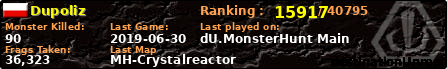 | Server | Map | LastGame | Score | Teamscore | Monsterleft | Deaths | Suicides | TKs | Distance | Playtime | |