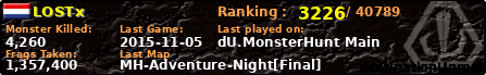 LOSTx | | PlayerID: | 3565 | | Overall MHT: | 1,357,400 | | Overall Deaths: | 274 | | Overall Suicides: | 21 | | Overall TeamKills: | 4 | | Overall Distance traveled: | 245km | | Overall Time Spend on Server: | 00days 18h 27m 55s | | Maps Played: | 74 | | Firstgame: | 2011-03-11 01:56:52 | | LastGame: | 2015-11-05 01:15:12 | | Player Ranking Place: | 3226 | | Used Playernames: | LOSTx MonsterKiller NewKid