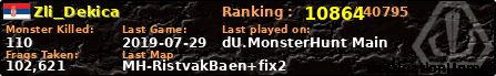 | Server | Map | LastGame | Score | Teamscore | Monsterleft | Deaths | Suicides | TKs | Distance | Playtime | |