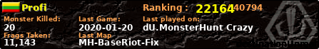 ![]() | MH-HellGauntletV2 | 2019-08-03 11:46:51 | 82 | 230440 | 10 | 9 | 0 | 0 | 1,79km | 00:39:20 |