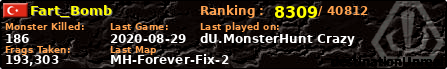 | Server | Map | LastGame | Score | Teamscore | Monsterleft | Deaths | Suicides | TKs | Distance | Playtime | |