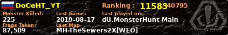 | Server | Map | LastGame | Score | Teamscore | Monsterleft | Deaths | Suicides | TKs | Distance | Playtime | |