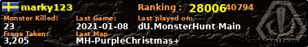 | Server | Map | LastGame | Score | Teamscore | Monsterleft | Deaths | Suicides | TKs | Distance | Playtime | |