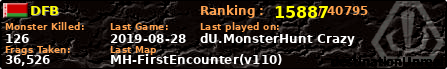 | Server | Map | LastGame | Score | Teamscore | Monsterleft | Deaths | Suicides | TKs | Distance | Playtime | |