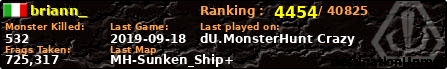 | MH-Sunken_Ship+ | 2019-09-18 22:14:41 | 437,275 | 157861 | 6 | 6 | 0 | 0 | 4,78km | 00:30:28 | |
