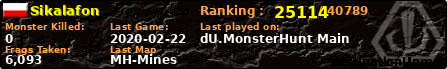 | Server | Map | LastGame | Score | Teamscore | Monsterleft | Deaths | Suicides | TKs | Distance | Playtime | |