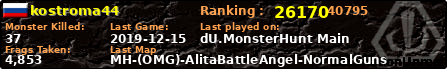 | Server | Map | LastGame | Score | Teamscore | Monsterleft | Deaths | Suicides | TKs | Distance | Playtime | |