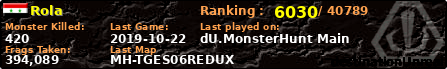 Rola | | PlayerID: | 36028 | | Overall MHT: | 394,089 | | Overall Deaths: | 21 | | Overall Suicides: | 0 | | Overall TeamKills: | 0 | | Overall Distance traveled: | 41km | | Overall Time Spend on Server: | 00days 05h 02m 25s | | Maps Played: | 15 | | Firstgame: | 2019-10-21 10:39:23 | | LastGame: | 2019-10-22 18:13:53 | | Player Ranking Place: | 6030 | | Used Playernames: | Rola