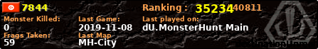| Server | Map | LastGame | Score | Teamscore | Monsterleft | Deaths | Suicides | TKs | Distance | Playtime | |