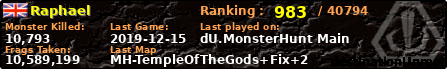 Raphael | | PlayerID: | 36211 | | Overall MHT: | 10,589,199 | | Overall Deaths: | 44 | | Overall Suicides: | 0 | | Overall TeamKills: | 1 | | Overall Distance traveled: | 124km | | Overall Time Spend on Server: | 00days 10h 48m 06s | | Maps Played: | 28 | | Firstgame: | 2019-11-25 03:52:18 | | LastGame: | 2019-12-15 13:31:55 | | Player Ranking Place: | 983 | | Used Playernames: | Raphael