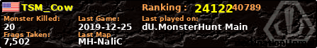 | Server | Map | LastGame | Score | Teamscore | Monsterleft | Deaths | Suicides | TKs | Distance | Playtime | |
