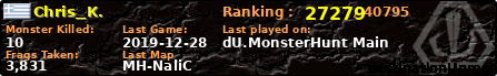 | Server | Map | LastGame | Score | Teamscore | Monsterleft | Deaths | Suicides | TKs | Distance | Playtime | |