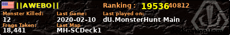 | Server | Map | LastGame | Score | Teamscore | Monsterleft | Deaths | Suicides | TKs | Distance | Playtime | |