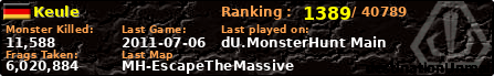 Keule | | PlayerID: | 3666 | | Overall MHT: | 6,020,884 | | Overall Deaths: | 533 | | Overall Suicides: | 2 | | Overall TeamKills: | 7 | | Overall Distance traveled: | 756km | | Overall Time Spend on Server: | 02days 12h 12m 58s | | Maps Played: | 234 | | Firstgame: | 2011-03-15 22:24:38 | | LastGame: | 2011-07-06 01:00:18 | | Player Ranking Place: | 1389 | | Used Playernames: | Keule