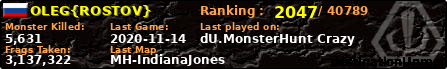 OLEG{ROSTOV} | | PlayerID: | 36670 | | Overall MHT: | 3,137,322 | | Overall Deaths: | 228 | | Overall Suicides: | 84 | | Overall TeamKills: | 1 | | Overall Distance traveled: | 136km | | Overall Time Spend on Server: | 00days 12h 51m 53s | | Maps Played: | 22 | | Firstgame: | 2020-02-17 21:47:24 | | LastGame: | 2020-11-14 15:24:00 | | Player Ranking Place: | 2047 | | Used Playernames: | OLEG{ROSTOV} {OLEG}ROSTOV