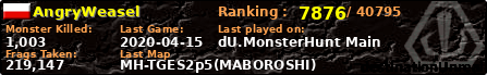 ![]() | MH-Tarnished | 2020-04-15 12:48:57 | 23,302 | 243528 | ![]() | 3 | 0 | 0 | 4,06km | 00:15:02 |