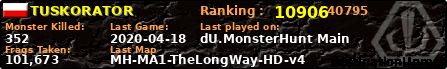 | Server | Map | LastGame | Score | Teamscore | Monsterleft | Deaths | Suicides | TKs | Distance | Playtime | |