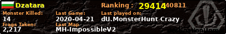 | Server | Map | LastGame | Score | Teamscore | Monsterleft | Deaths | Suicides | TKs | Distance | Playtime | |