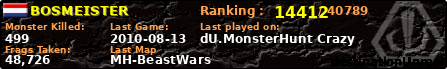 | Server | Map | LastGame | Score | Teamscore | Monsterleft | Deaths | Suicides | TKs | Distance | Playtime | |