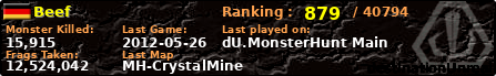 Beef | | PlayerID: | 3753 | | Overall MHT: | 12,524,042 | | Overall Deaths: | 1090 | | Overall Suicides: | 145 | | Overall TeamKills: | 19 | | Overall Distance traveled: | 1,094km | | Overall Time Spend on Server: | 03days 23h 07m 48s | | Maps Played: | 462 | | Firstgame: | 2011-03-20 18:17:11 | | LastGame: | 2012-05-26 08:50:33 | | Player Ranking Place: | 879 | | Used Playernames: | Beef vaca.de.tiempo fakeBeef Geschmak.der.Kuh Geschmack.der.Kuh Chav