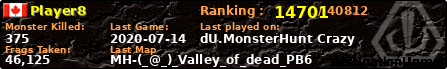 | Server | Map | LastGame | Score | Teamscore | Monsterleft | Deaths | Suicides | TKs | Distance | Playtime | |