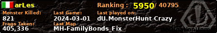 | Server | Map | LastGame | Score | Teamscore | Monsterleft | Deaths | Suicides | TKs | Distance | Playtime | |
