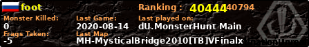 | Server | Map | LastGame | Score | Teamscore | Monsterleft | Deaths | Suicides | TKs | Distance | Playtime | |