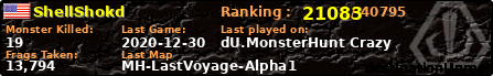| MH-LastVoyage-Alpha1 | 2020-12-30 18:01:33 | 0 | 499411 | ![]() | 0 | 0 | 0 | 0,01km | 00:14:21 | |