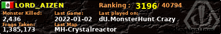 LORD_AIZEN | | PlayerID: | 38269 | | Overall MHT: | 1,385,173 | | Overall Deaths: | 186 | | Overall Suicides: | 0 | | Overall TeamKills: | 0 | | Overall Distance traveled: | 95km | | Overall Time Spend on Server: | 00days 08h 27m 25s | | Maps Played: | 21 | | Firstgame: | 2020-10-20 00:59:47 | | LastGame: | 2022-01-02 23:35:37 | | Player Ranking Place: | 3196 | | Used Playernames: | LORD_AIZEN