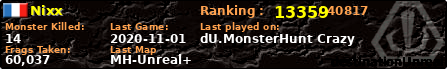 | Server | Map | LastGame | Score | Teamscore | Monsterleft | Deaths | Suicides | TKs | Distance | Playtime | |