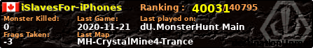| Server | Map | LastGame | Score | Teamscore | Monsterleft | Deaths | Suicides | TKs | Distance | Playtime | |