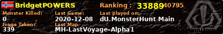 | Server | Map | LastGame | Score | Teamscore | Monsterleft | Deaths | Suicides | TKs | Distance | Playtime | |