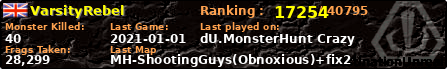 | Server | Map | LastGame | Score | Teamscore | Monsterleft | Deaths | Suicides | TKs | Distance | Playtime | |