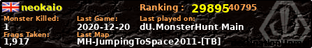 | Server | Map | LastGame | Score | Teamscore | Monsterleft | Deaths | Suicides | TKs | Distance | Playtime | |