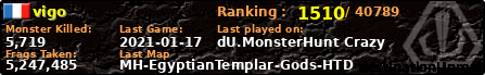 vigo | | PlayerID: | 38672 | | Overall MHT: | 5,247,485 | | Overall Deaths: | 65 | | Overall Suicides: | 0 | | Overall TeamKills: | 0 | | Overall Distance traveled: | 154km | | Overall Time Spend on Server: | 00days 11h 11m 52s | | Maps Played: | 45 | | Firstgame: | 2021-01-05 21:07:07 | | LastGame: | 2021-01-17 21:29:02 | | Player Ranking Place: | 1510 | | Used Playernames: | vigo