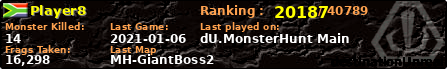 | Server | Map | LastGame | Score | Teamscore | Monsterleft | Deaths | Suicides | TKs | Distance | Playtime | |
