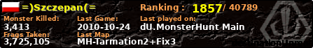 =)Szczepan(= | | PlayerID: | 388 | | Overall MHT: | 3,725,105 | | Overall Deaths: | 355 | | Overall Suicides: | 37 | | Overall TeamKills: | 8 | | Overall Distance traveled: | 277km | | Overall Time Spend on Server: | 01days 00h 26m 31s | | Maps Played: | 138 | | Firstgame: | 2010-08-08 01:16:12 | | LastGame: | 2010-10-24 19:56:27 | | Player Ranking Place: | 1857 | | Used Playernames: | =)Szczepan(=