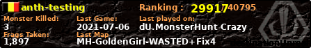 | Server | Map | LastGame | Score | Teamscore | Monsterleft | Deaths | Suicides | TKs | Distance | Playtime | |